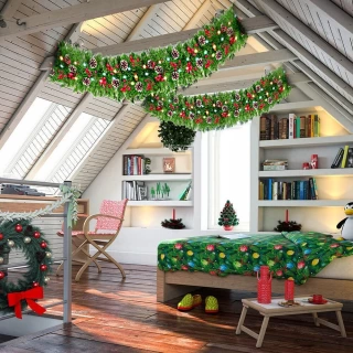 Let the Trufairs 106 in. Artificial Christmas Garland Prelit with Lights lend a festive elegance to your home throughout the holiday season. This stunningly detailed nine-foot garland is such an easy way to bring a lush holiday feel into any space. With realistic vine green rattan, this simulated foliage looks naturally full and textured-perfect for home decor, shopping mall, hotel lobby or cafe shop at holiday season.