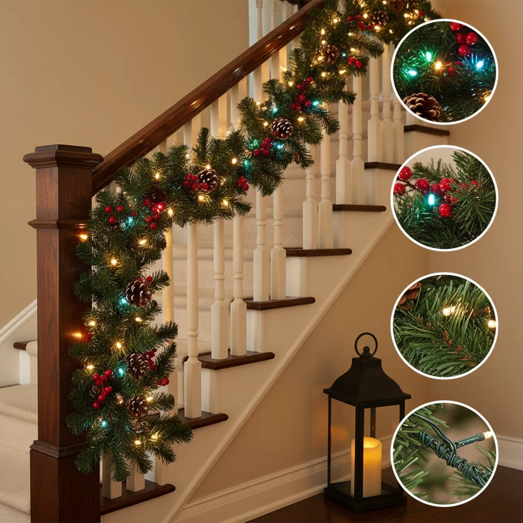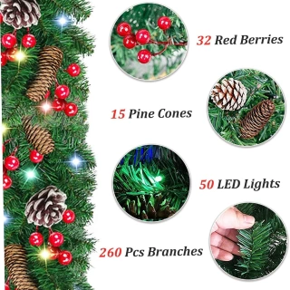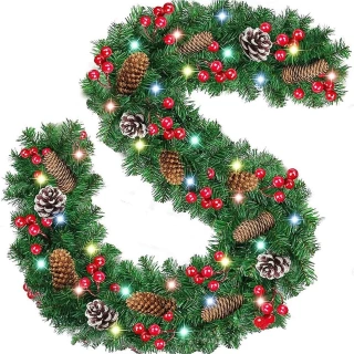 This pre-lit Christmas garland has built in colored led lights to help you create a festive and colorful holiday mood instantly. This fake greenery would never need water without wilting, and can be enjoyed all year round by the fire. Whether hung on a stairway, wrapped around the banister or draped over an entryway this 106 inch decorative garland is sure to bring added cheer for the holidays.